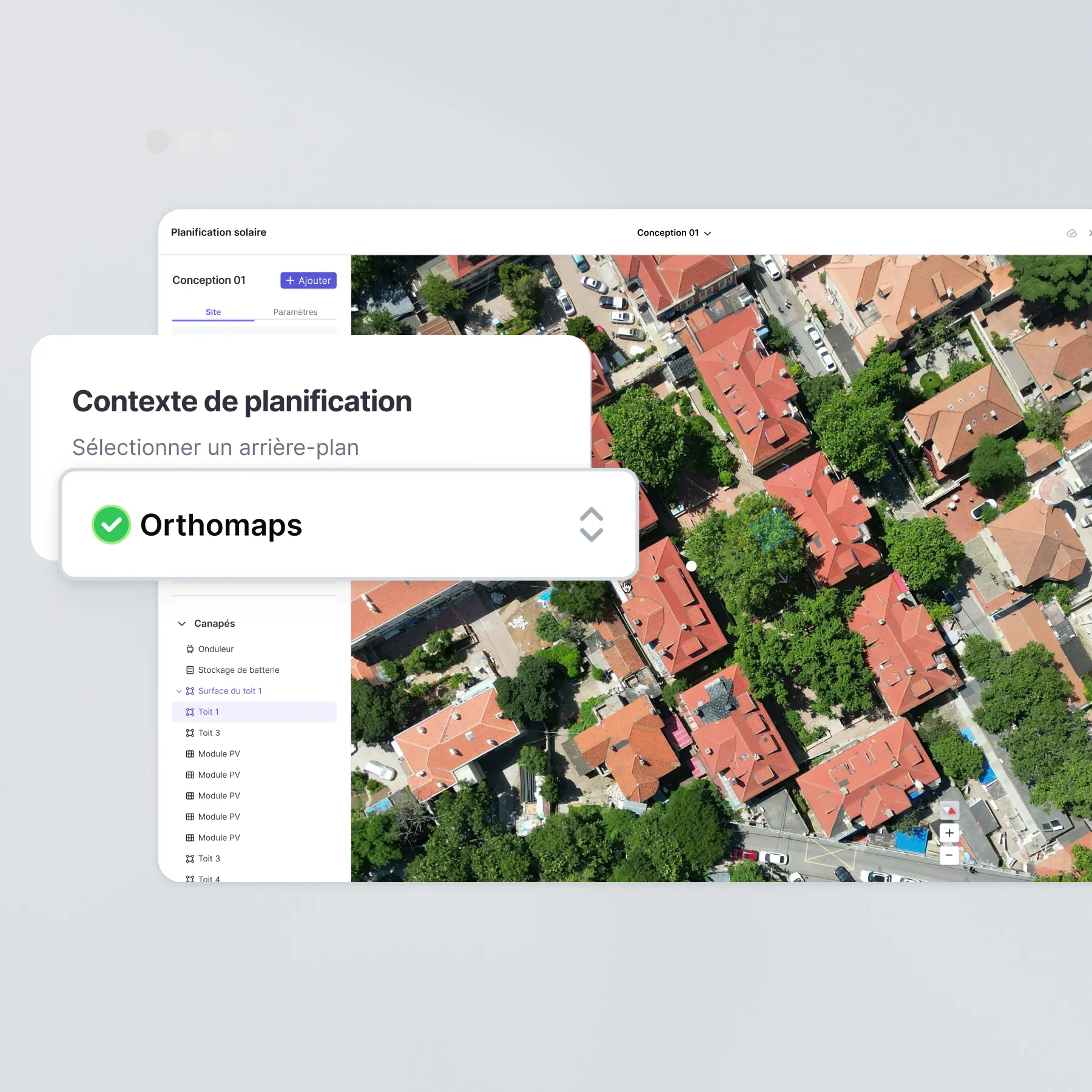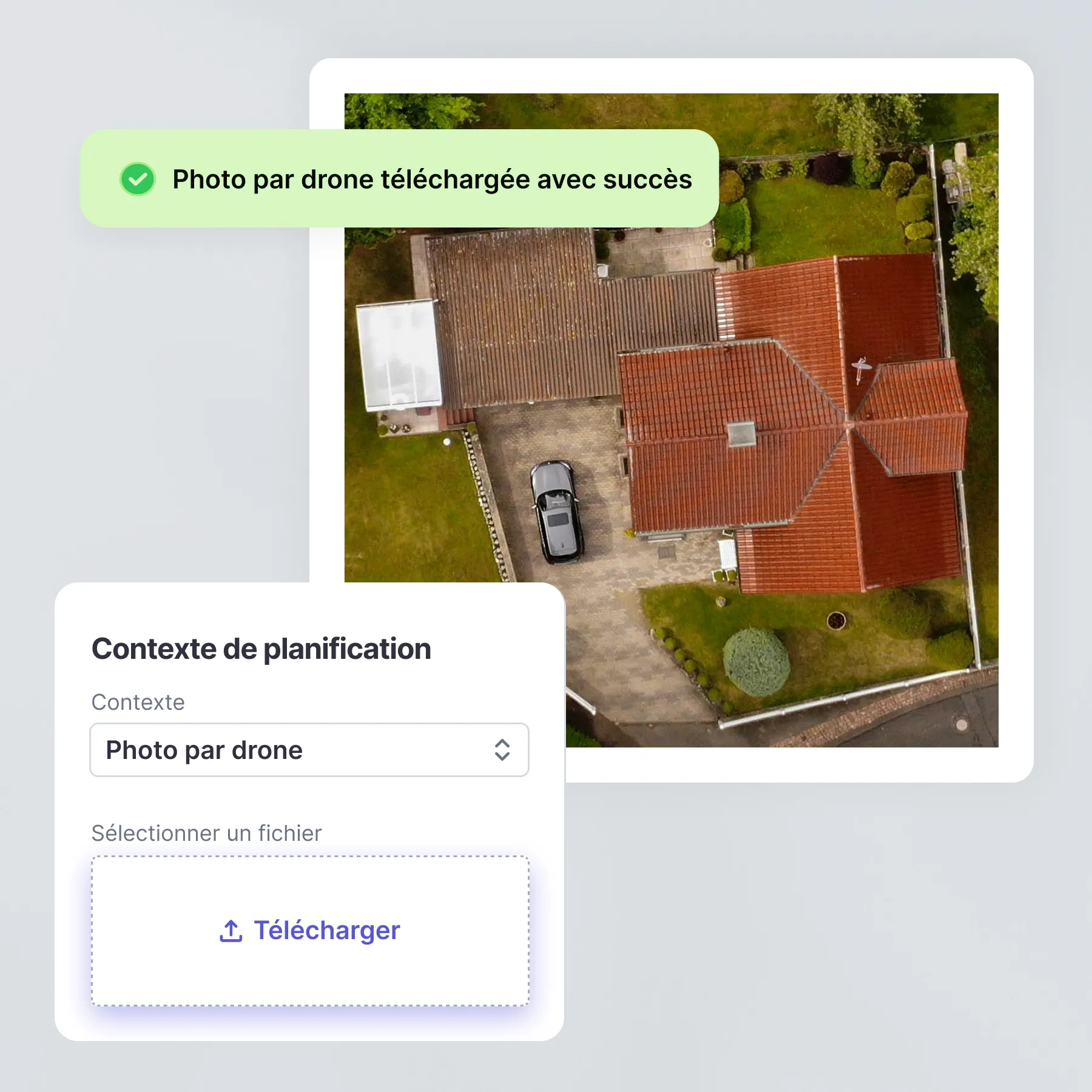 Oui, vous pouvez télécharger directement vos propres photos prises par drone. Le système les traite automatiquement pour les rendre exploitables dans votre planification photovoltaïque.