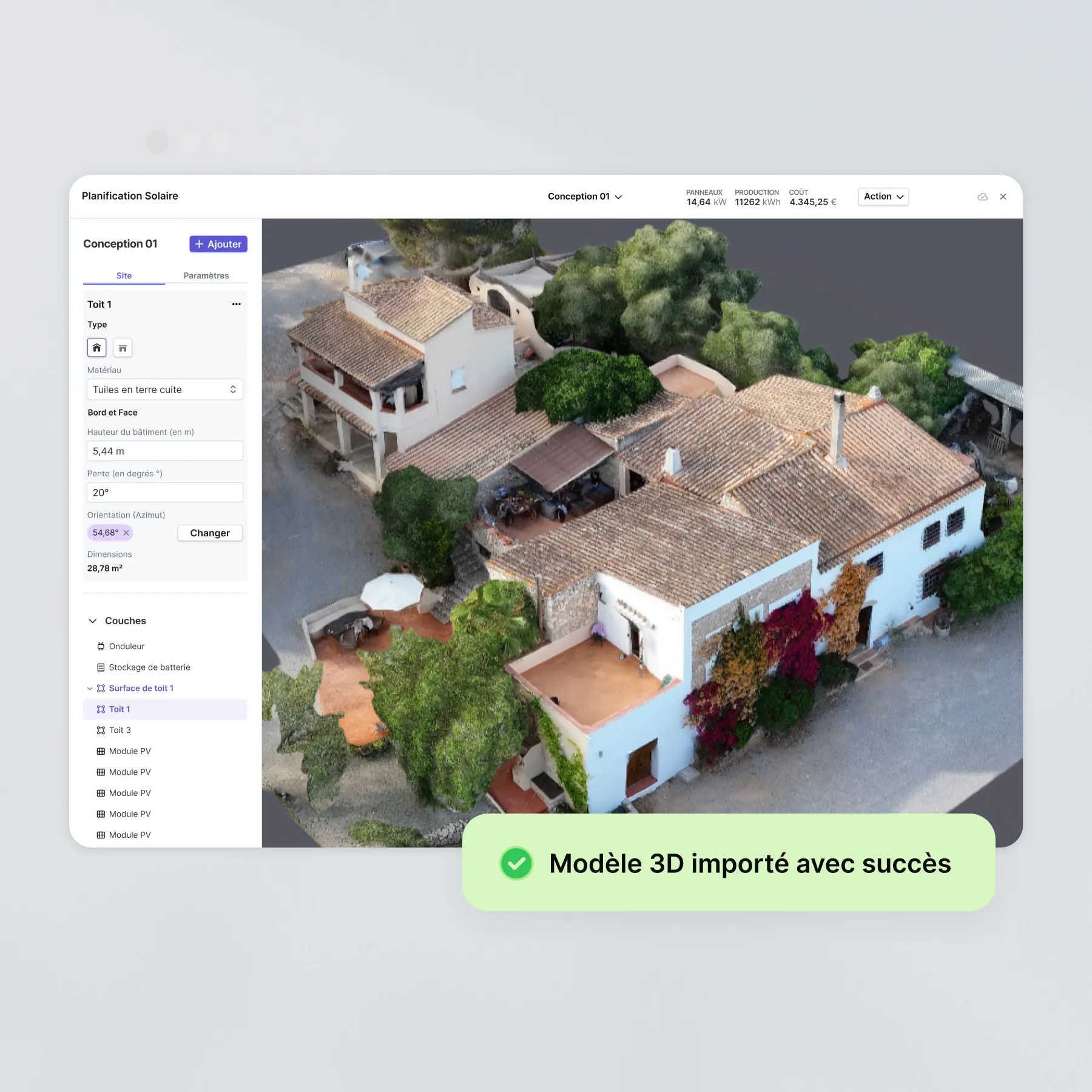 - Planification photovoltaïque en 2D et 3D