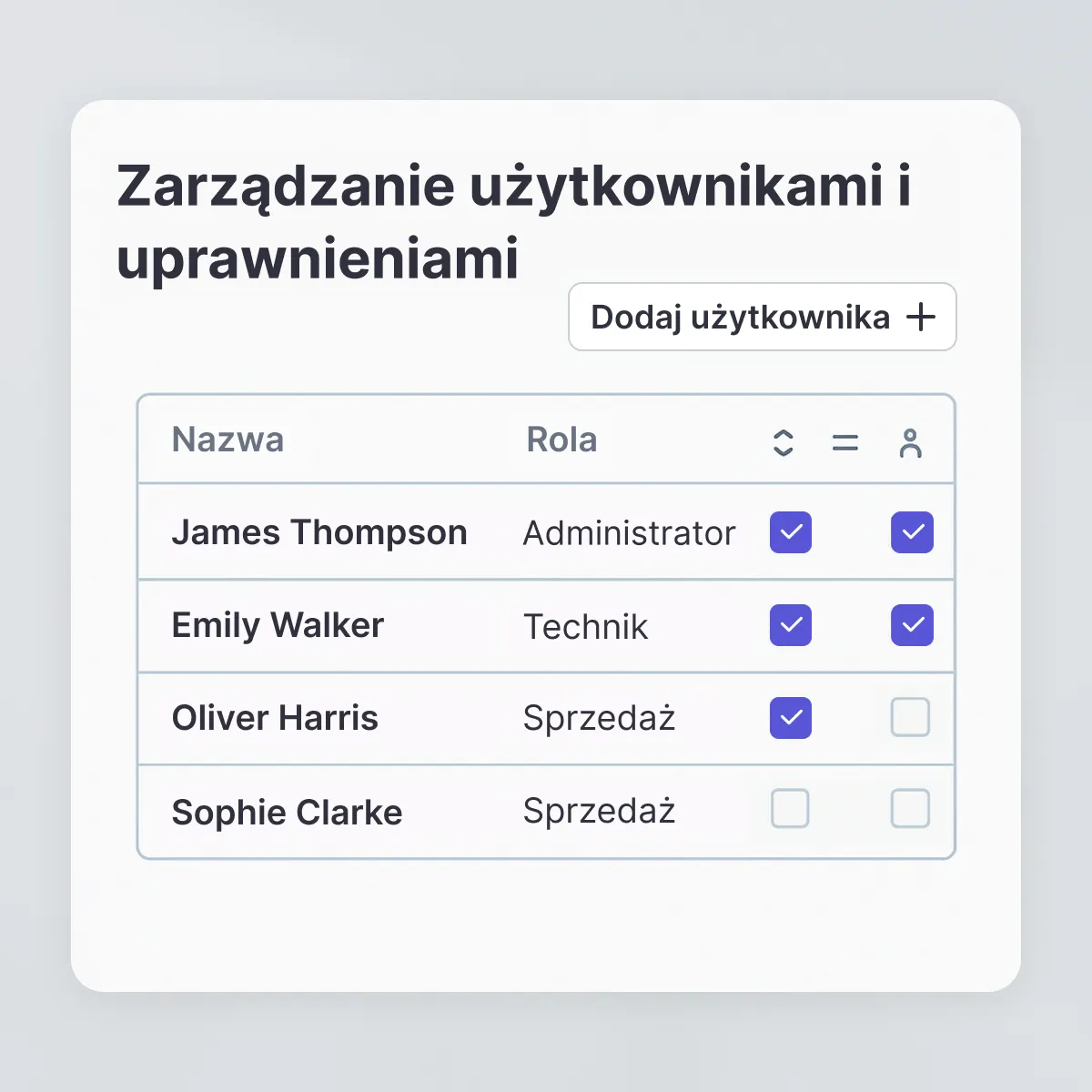 - Łatwe definiowanie ról i uprawnień użytkowników i zarządzanie nimi