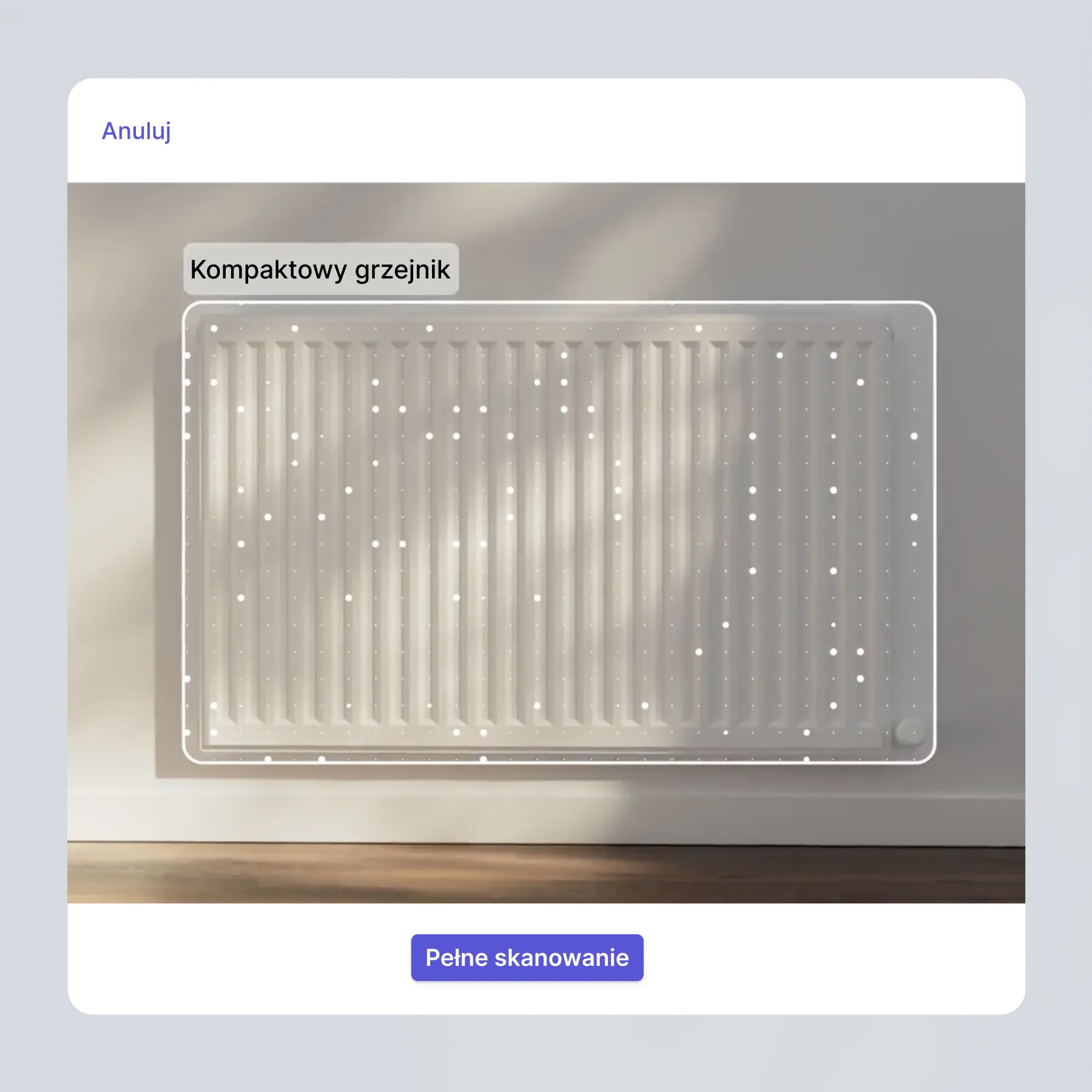 Wykrywanie grzejników to technologia oparta na sztucznej inteligencji, która automatycznie identyfikuje i mierzy grzejniki. Rozpoznaje różne typy, takie jak grzejniki kompaktowe, płaskie i łazienkowe za pomocą skanowania LiDAR. Oprogramowanie rejestruje precyzyjne wymiary i przenosi je bezpośrednio do obliczeń obciążenia cieplnego. Rozpoznawanie grzejników jest zatem cyfrowym narzędziem optymalizacji procesów w planowaniu pomp ciepła.