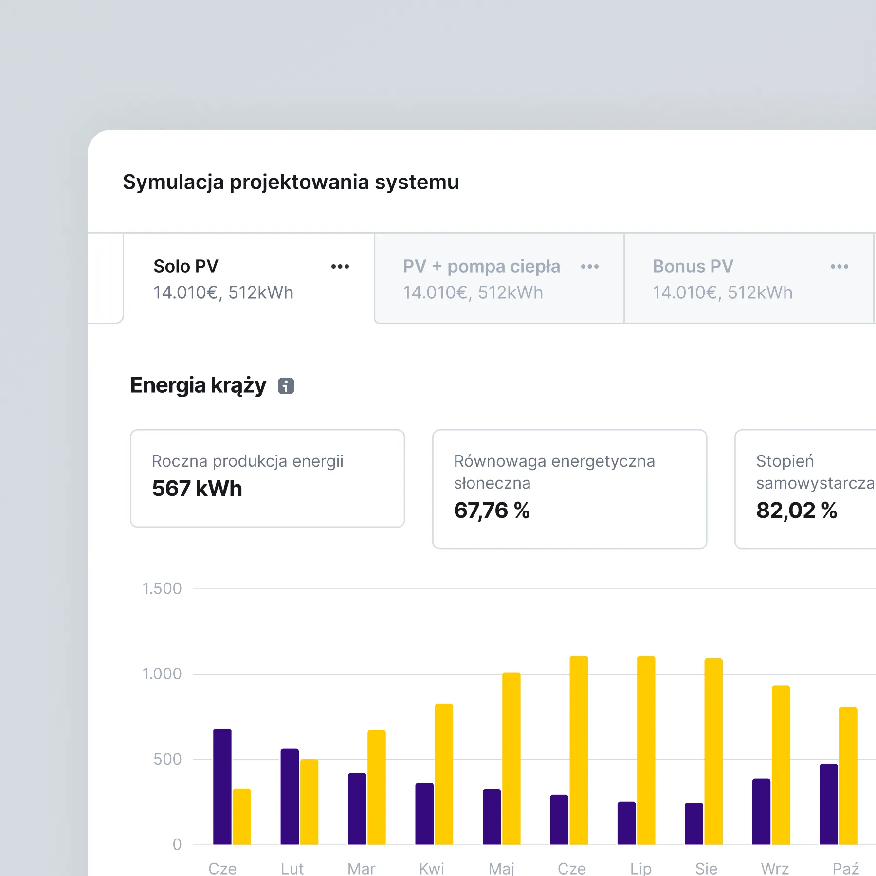 Umożliwia precyzyjną ocenę rentowności i wydajności systemów energetycznych takich jak pompy ciepła i fotowoltaiczne z wyprzedzeniem. Pozwala to na podejmowanie uzasadnionych decyzji i minimalizowanie ryzyka planowania.