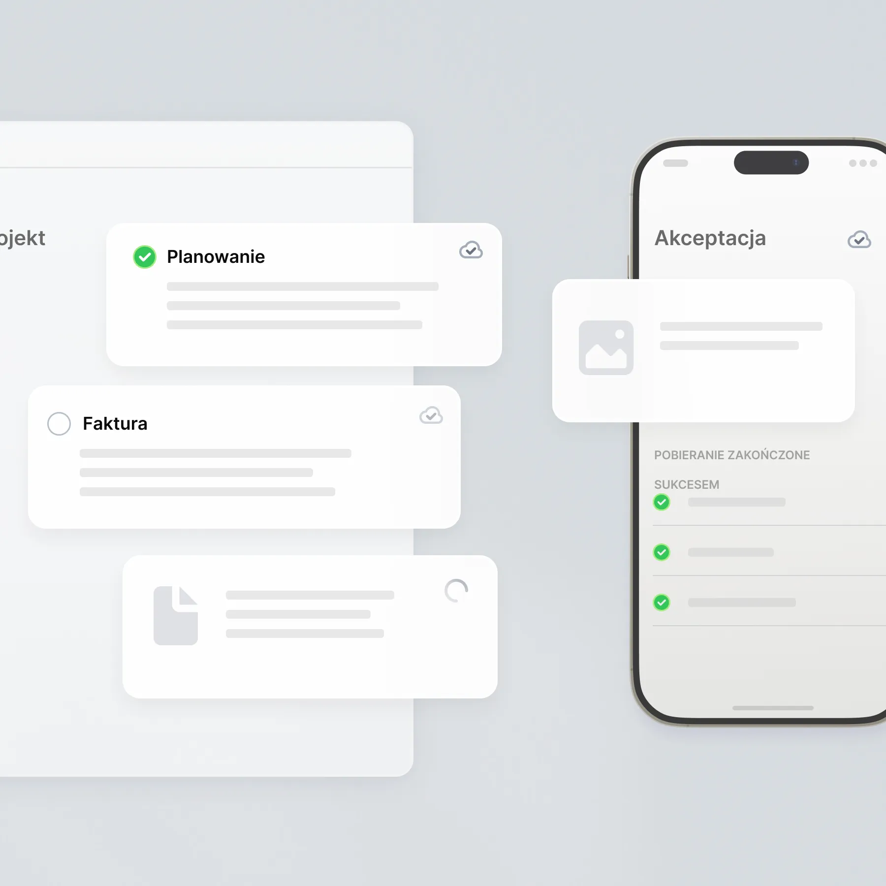 Po prostu kontynuujesz pracę offline bez przerwy. Wszystkie funkcje pozostają dostępne. Twoje dane synchronizują się automatycznie, gdy tylko połączenie internetowe zostanie przywrócone.